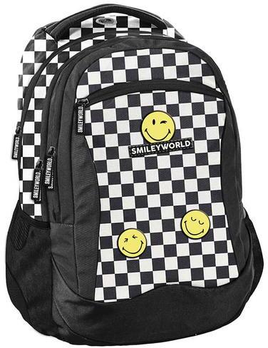 Az Emoji iskolatáska, hátizsák - 3 rekeszes - Sakktábla (SM24LJ-2808) aranyos Smiley-s mintájával és vízlepergető anyagával a nagyobb korosztály ruhatárának divatos kiegészítője. A hátizsák 3 különböző méretű cipzáras rekesszel, elöl plusz 1 kisebb cipzáras zsebbel és 2 hálós oldalzsebbel rendelkezik. A fő rekeszben található egy laptop tartó- és egy mobiltelefon