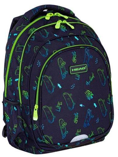 A Skate ergonomikus iskolatáska, hátizsák - 2 rekeszes - Head - 42 cm (502024115) a kisiskolások számára. A hátizsák 2 cipzáras rekesszel , 1 kisebb, cipzáras zsebbel és két oldalsó hálós zsebbel rendelkezik. Hátoldala merevített, ergonomikus kialakí tású, vállpántja állítható hosszúságú, szintén szivacsos borítással. A táska a tetején lévő megerősített foganty