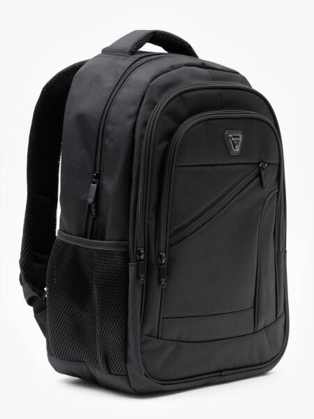 30x44x18 cm, 23Lalapanyaga vízlepergetőmindkét oldalán hálós kulacstartó zsebhátlapon biztonsági zsebhárom különálló cipzáros rekeszaz első rekeszben rendszerező zsebeklaptop tartóbőröndre rögzíthető