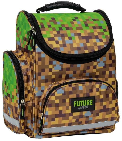 Termék részletekA Future by BackUp Game II ergonomikus iskolatáska a népszerű videojáték, a Minecraft hangulatát idézi. Az ergonomikus megnevezés azt takarja, hogy a tervezés során figyelembe veszik a kisiskolás korú gyermekek testi adottságait és olyan hátizsákot készítenek, mely kíméli a gerincet, segíti a helyes testtartást. A táska oldala merevített , hátsó része a gerinc két oldal