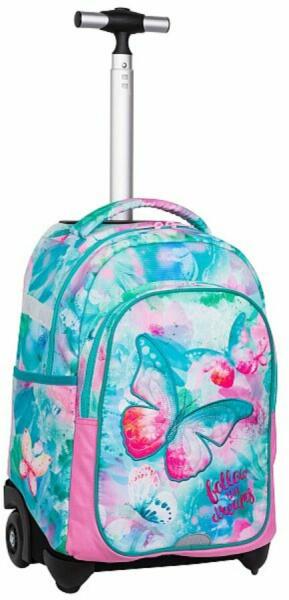Egy igazi bájos, csajos, kerekeken gördülő iskolatáska, amelyen gyönyörű pasztellszínű pillangók tündökölnek. . A táska szépséges külleme mellett persze a legfőbb előny, hogy gyermekedet így meg tudod kímélni a cipekedéstől, húzhatja, de természetesen háton is viheti a táskáját. 1 nagyobb és 1 kisebb rekesze van a rekeszek cipzárral záródnak oldalán 1-1 zsebbel