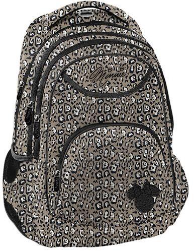 A BeUniq Minnie Mouse hátizsák, iskolatáska - 3 rekeszes - Párduc mintás barna-fehér-fekete színösszeállításával a nagyobb korosztály ruhatárának divatos kiegészítője. A hátizsák 3 különböző méretű cipzáras rekesszel, elöl plusz 1 kisebb cipzáras zsebbel és 2 hálós oldalzsebbel rendelkezik. A fő rekeszben található egy laptop tartó , a másik rekeszben egy rends