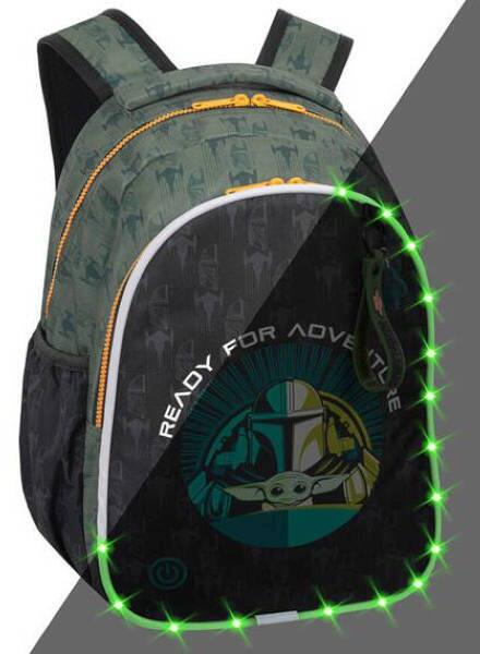 30x43x20 cm, 26L alapanyaga vízlepergető fényvisszaverő részletek mindkét oldalán hálós kulacstartó zseb légcsatornás hátlap eleje kikeményített különböző testmagasságokhoz állítható pántok három különálló cipzáros rekesz az első rekeszben rendszerező zsebek esővédő huzattal 6-8 éveseknek ajánljuk