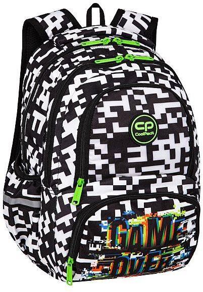 A menő, videójátékos mintázattal rendelkező Coolpack - Jerry iskolatáska, hátizsák - 3 rekeszes - Gamer (F029827) a kisiskolás korosztály ruhatárának div atos kiegészítője. A hátizsák 3 különböző méretű, cipzáras rekesszel rendelkezik . Két nagy rekeszében könnyedén elfér az A4 -es formátum, ami az iskolai tankönyvek hagyományos mérete. A hátizsák oldalán két