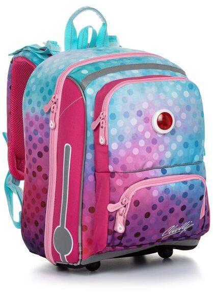A BackUp hátizsák a kislányok ruhájának divatos kiegészítője. A hátizsák 3 különböző méretű cipzáras rekesszel, elöl plusz 1 kisebb cipzáras zsebbel és 2 hálós oldalzseb bel rendelkezik. Hátoldala merevített, ergonomikus kialakítású, légáteresztő hálós szivaccsal. Állítható vállpánt ja szivacsos, légáteresztő hálós fedőréteggel, diszkrét fényvisszaver