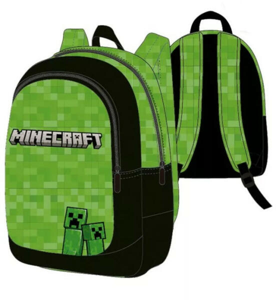 Minecraft hátitáska, mely iskolatáskának is használható. Két tárolóval rendelkezik, egy nagy és egy kisebb zsebbel, illetve oldalt hálós kulacstartóval. Pántjai állíthatóak, szivacsos vállpánt. Anyaga: 100% poliészter Méret: 40 x 30 x 15 cm