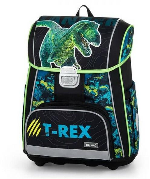 Prémium minőségű iskolatáska 1-3. osztályos fiúknak, nagy T-Rex dinós mintával. Az elsős iskolatáska kényelmes, szellőző anyaggal párnázott ergonómikus hátkiképzésű. A merevfalú iskolatáska igen könnyű. Vállpántja párnázott és méretre állítható. Mellkasöv (mellkaspánt) teszi még kényelmesebbé a viselését, megakadályozza a vállpánt lecsúszását. Nyitott