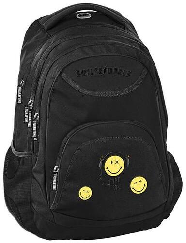 Az Emoji hátizsák, iskolatáska - 3 rekeszes - Turn Up (SM24LG-2708) aranyos, Smiley-s mintájával a nagyobb korosztály ruhatárának divatos és egyedi kiegészítője. A hátizsák 3 különböző méretű cipzáras rekesszel, elöl plusz 1 kisebb cipzáras zsebbel és 2 hálós oldalzsebbel rendelkezik. A fő rekeszben található egy laptop tartó , a másik rekeszben egy rendszerező zseb