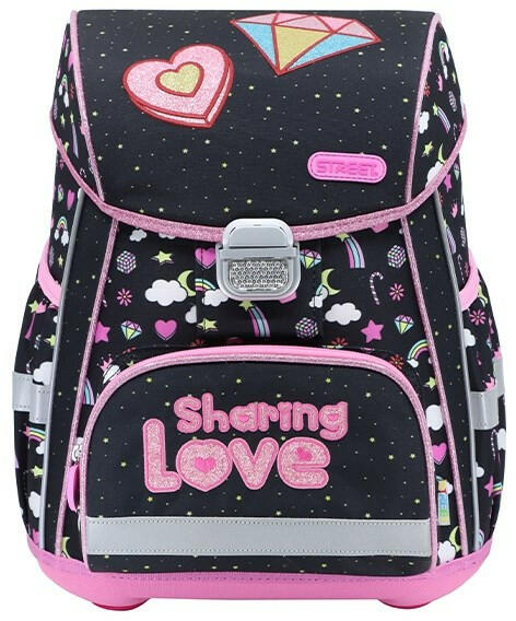 Iskolatáska STREET anatómiai ABC Love mérete: 32x38x25 cm, tömege 0,95 kg, űrtartalma 30,4 liter, anyaga 600D polyester; műanyag záras fényvisszaverő csat a könnyű egykerezs nyitáshoz; nagyon könnyű mindössze 950 gramm; ergonómiailag tervezett, párnázott hátrész; erős szilárd alj a stabilitás érdekében; erős és puha pántok, AIR-SYSTEM hálós rendszer a hát megfelelő