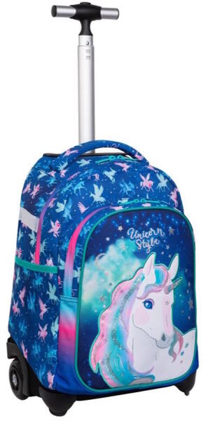 A gyönyörű egyszarvú mintával dekorált Coolpack - Colorino Jack gurulós iskolatáska, hátizsák - 2 rekeszes - Unicorn az iskolás korosztály ruhatárának divatos kiegészítője. A hátizsák 2 különböző méretű, cipzáras rekesszel rendelkezik . Strapabíró kerekeken gurul, a hátizsák háton is hordható. Két nagy rekeszében könnyedén elfér az A4 -es formátum, ami az isko