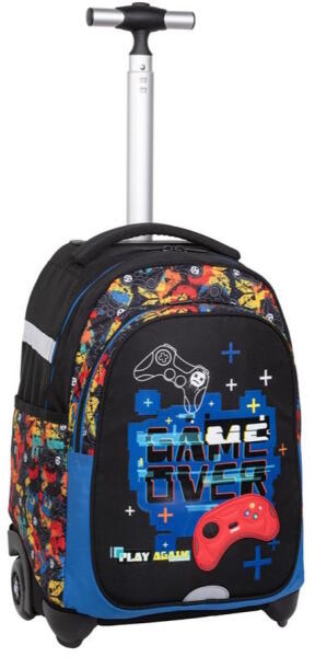 A vagány, videojátékos mintákkal dekorált Coolpack - Colorino Jack gurulós iskolatáska, hátizsák - 2 rekeszes - Game az iskolás korosztály ruhatárának divatos kiegészítője. A hátizsák 2 különböző méretű, cipzáras rekesszel rendelkezik . Strapabíró kerekeken gurul, a hátizsák háton is hordható. Két nagy rekeszében könnyedén elfér az A4 -es formátum, ami az iskol