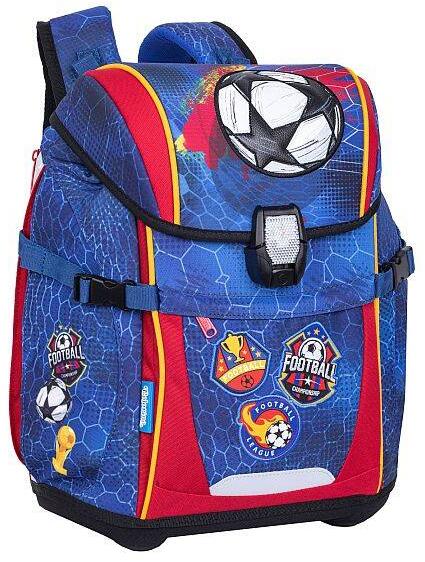 Coolpack - Colorino Ferbie kapcsos ergonomikus iskolatáska, hátizsák - Football vagány focis mintával. Az ergonomikus megnevezés azt takarja, hogy a tervezés során figyelembe veszik a kisiskolás korú gyermekek testi adottságait és olyan hátizsákot készítenek, mely kíméli a gerincet, segíti a helyes testtartást. A táska oldala és teteje is merevített, hátsó része a gerinc