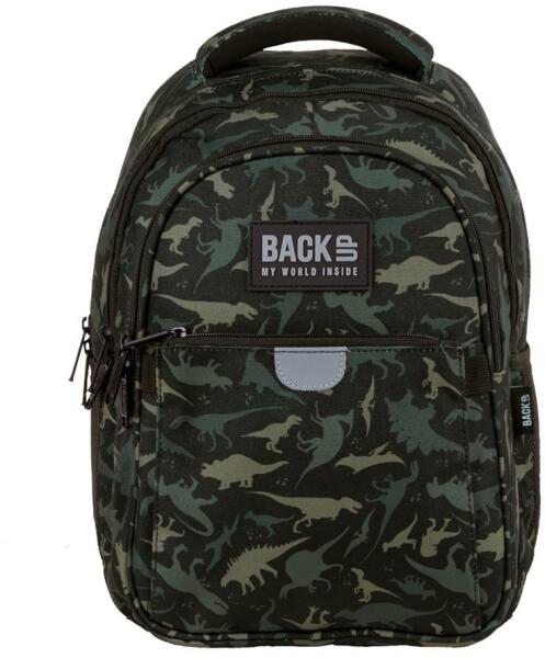 A Derfor m - BackUp Terepmintás Dinoszaurusz hátizsák - 3 rekeszes - Moro szürke-fekete alaps zínű mintával deko rálva a nagyobb korosztály ruhatárának kiegészítője. A hátizsák 3 különböző méretű cipzáras rekesszel és 2 kisebb hálós oldalzseb bel rendelkezik. Hátoldala merevített, ergonomikus kialakítású, légáteresztő hálós szivaccsal. Állítható vállpánt ja