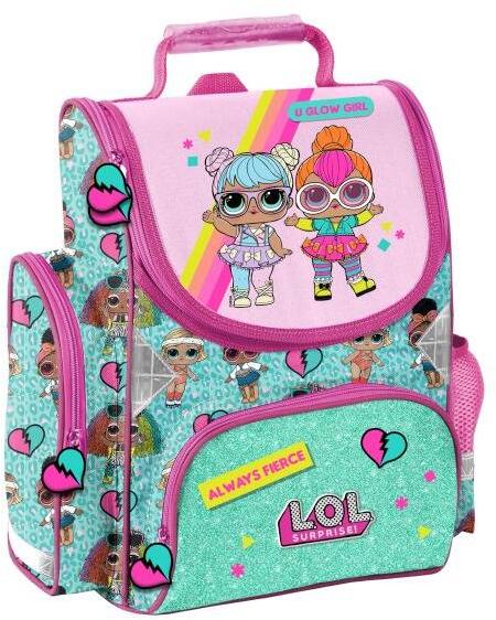 LOL Surprise ergonomikus iskolatáska - U glow girl cuki babák képével, 1-2. osztályos kisiskolásoknak. Az ergonomikus megnevezés azt takarja, hogy a tervezés során figyelembe veszik a kisiskolás korú gyermekek testi adottságait és olyan hátizsákot készítenek, mely kíméli a gerincet, segíti a helyes testtartást. A könnyített (900 g) táska oldala merevített , hátsó része