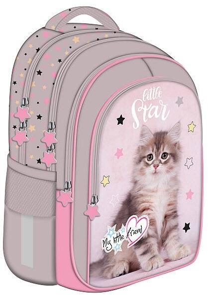 A My little friend cicás ergonomikus iskolatáska, hátizsák - Grey Cat a kisebb és nagyobb korosztály számára is ideális választás. A szürke-pink színű táskát édes kis fehér cicus díszíti. A hátizsák 4 nagyobb méretű, cipzáras rekesszel és két kis hálós oldalzsebbel rendelkezik. Hátoldala ergonomikus kialakítású, légáteresztő hálós szivaccsal és mellpánttal .