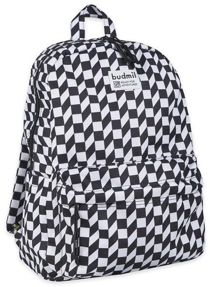 Budmil márkájú, divatos hátizsák lányoknak, fiúknak különleges fekete-fehér kockás mintával. Tetszőlegesen viselhető iskolai, munkahelyi, vagy szabadidős hátizsákként. Iskolába felsősöknek, egyetemistáknak ajánljuk közepes mérete miatt. Kialakítása: a hátizsák 1 rekeszes egy cipzáras négyszögletes előzsebbel. Főrekeszében iratrendező található. Mindkét oldal
