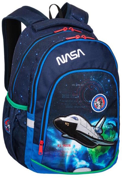 A vagány űrhajós mintával díszített Coolpack - Colorino Primer ergonomikus iskolatáska, hátizsák - 2 rekeszes - NASA a kisiskolás korosztály ruhatárának div atos kiegészítője. A hátizsák 2 különböző méretű, cipzáras rekesszel, és egy első cipzáras zsebbel rendelkezik . Két nagy rekeszében könnyedén elfér az A4 -es formátum, ami az iskolai tankönyvek hagyományos