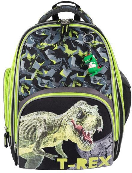 A Bambino Premium - Dinoszauruszos hátizsák, iskolatáska - 2 rekeszes - T-REX a kisfiúk ruhatárának divatos kiegészítője. A hátizsák 2 nagy és egy kisebb méretű, cipzáras zsebbel rendelkezik. Egyik oldalán egy nagyobb cipzáras, másik oldalán hálós zseb található, a kulacs és a tolltartó tárolására. Hátoldala ergonomikus kialakítású, légáteresztő hálós szivaccsa