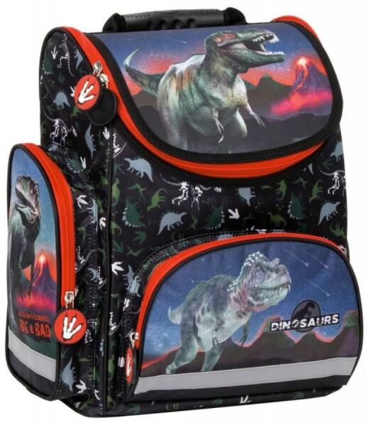 A Dinoszauruszos ergonomikus iskolatáska - T-Rex menő dínós mintájával a kisiskolás fiúk kedvence lesz! Az ergonomikus megnevezés azt takarja, hogy a tervezés során figyelembe veszik a kisiskolás korú gyermekek testi adottságait és olyan hátizsákot készítenek, mely kíméli a gerincet, segíti a helyes testtartást. A táska oldala merevített, hátsó része a gerinc két oldal