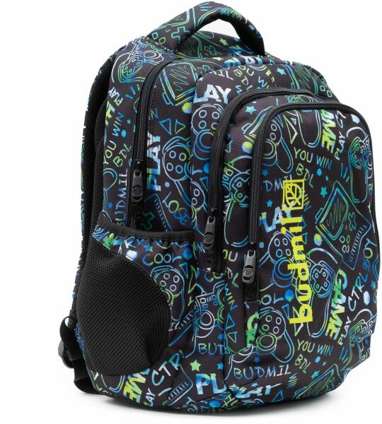Nagyméretű Game ergonomikus iskolatáska, hátizsák az igazi gamereknek! A hátizsák egy nagyobb és egy kisebb cipzáras rekesszel és két külső hálós oldalzsebbel rendelkezik. Hátoldala ergonomikus, merevített kialakítású, légáteresztő hálós szivaccsal; állítható, szivacsos vállpánttal, mellpánttal . A tetején lévő megerősített fogantyúval kézben is vihető. A há