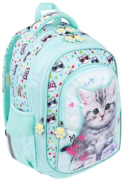 My little friend - Cicás ergonomikus iskolatáska, hátizsák - 4 rekeszes - Mint (668760) , mely cuki cicás mintával van ellátva, a kislányok kedvence lesz! Vízálló és tartós anyagból készült. A hátizsák nagyon tágas, 3 nagy rekesszel, illetve egy kisebb első rekesszel rendelkezik . Az első rekeszben praktikus rendszerező található egy kulcstartóval, amely segít a rend fenn