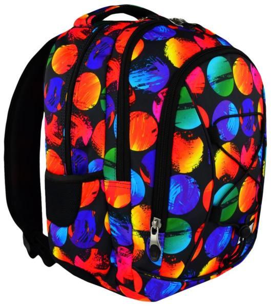 St. Right Colourful Dots iskolatáska hátizsák 16" Hivatalos magyarországi forgalmazótól. Leírás: Rendkívül kényelmes, vastagon párnázott, ergonomikus kialakítású hátrésszel rendelkezik ez a szuper iskolatáska, melynek elosztása is segíti a tanszerek rendszerezését. A színes pontokkal dekorált iskolatáska vízálló anyagból készült, három tárolórekesszel, cipzáras