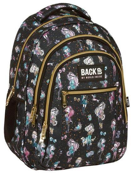 A divatos BackUp hátizsák a kisiskolás lányok ruhájának divatos kiegészítője. A hátizsák 3 különböző méretű cipzáras rekesszel, elöl plusz 1 kisebb cipzáras zsebbel és 2 hálós oldalzseb bel rendelkezik. Hátoldala merevített, ergonomikus kialakítású, légáteresztő hálós szivaccsal. Állítható vállpánt ja szivacsos, légáteresztő hálós fedőréteggel, diszkré