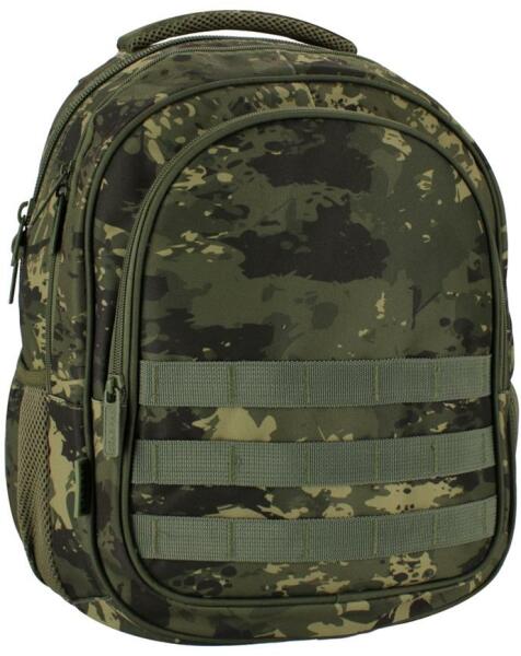 A nagyméretű Terepmintás 2 rekeszes iskolatáska, hátizsák - Tactic a nagyobb korosztály számára készült. A hátizsák 2 nagyobb méretű rekesszel, egy első cipzáras és két kisebb hálós oldalzsebbel rendelkezik. Hátoldala ergonomikus kialakítású, légáteresztő, hálós szivaccsal. A belső zsebekben több kisebb rendszerező zseb, kulcstartó és mobiltartó is található.
