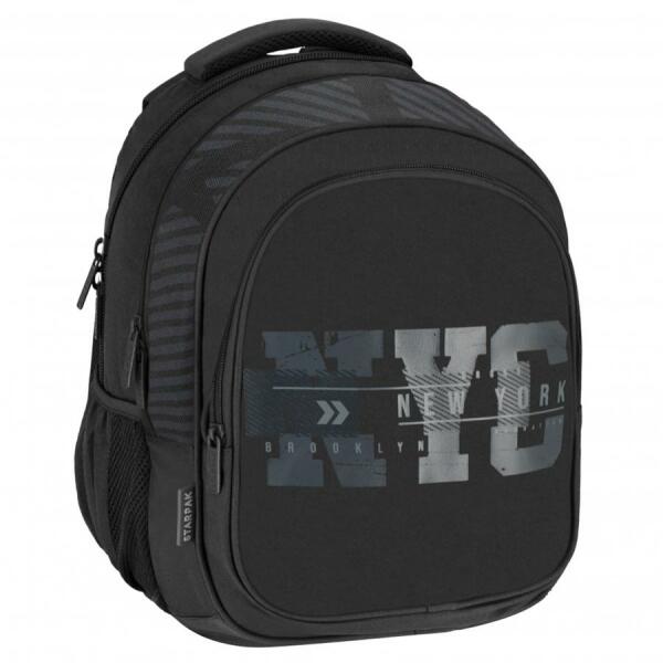 A nagyméretű NYC 2 rekeszes iskolatáska, hátizsák a nagyobb korosztály számára készült. A hátizsák 2 nagyobb méretű rekesszel, egy első cipzáras és két kisebb hálós oldalzsebbel rendelkezik. Hátoldala ergonomikus kialakítású, légáteresztő, hálós szivaccsal. A belső zsebekben több kisebb rendszerező zseb, kulcstartó és mobiltartó is található. Állítható váll