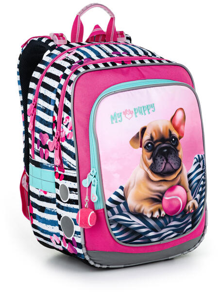 Fő jellemzők: merev préselt hátrész könnyű – kevesebb mint 1 kg! számos fényvisszaverő elem szabályozható vállpántok és mellkasi pánt Iskolatáska a legapróbb termetű alsó tagozatos lányoknak. Két rekesz, buldoggal díszített mély első zseb és ajándék rózsaszín teniszlabda függődísz. Hogy tetszik? Nekünk nagyon! Az ENDY modell az egyik örökzöldünk: legnagyobb