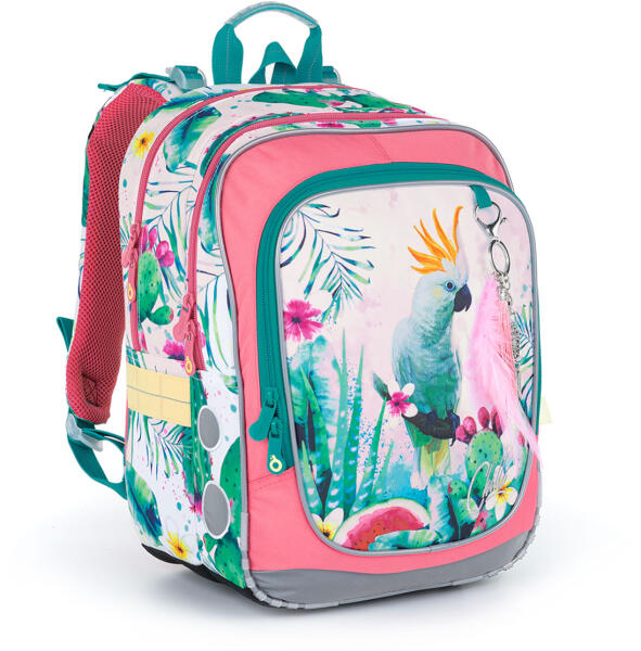 Iskolatáska a legapróbb termetű alsó tagozatos lányoknak. Két rekesz, kakaduval díszített mély első zseb és ajándék tollas függődísz. Hogy tetszik? merev préselt hátrész könnyű – kevesebb mint 1 kg! számos fényvisszaverő elem szabályozható vállpántok és mellkasi pánt Mondjátok csak, melyik iskolás kislánynak ne tetszene egy kakadus iskolatáska, ráadásul ajánd