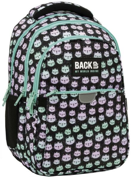 A Colour Kitty cicás hátizsák a kisiskolás lányok számára készült. A hátizsák 3 különböző méretű cipzáras rekesszel, elöl plusz 1 kisebb cipzáras zsebbel és 2 hálós oldalzseb bel rendelkezik. Hátoldala merevített, ergonomikus kialakítású, légáteresztő hálós szivaccsal. Állítható vállpánt ja szivacsos, légáteresztő hálós fedőréteggel, diszkrét fényviss
