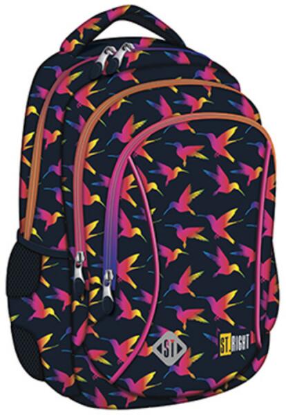 St. Right Rainbow Brids BP26 iskolatáska hátizsák 15" Hivatalos magyarországi forgalmazótól. Leírás: A szivárványszínű madarakkal díszített táska remek választás a kislányok számára, hiszen a mutatós minta mellett kényelmes és praktikus is, akár az iskolában lesz használva, akár szabadidős programokhoz. A táska párnázott kialakítású hát részének, valamint az á