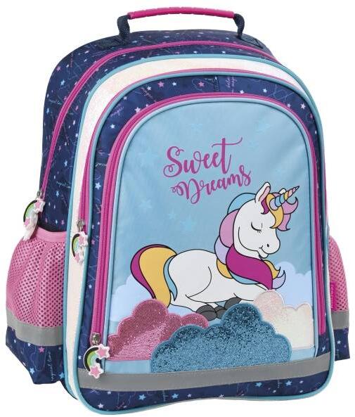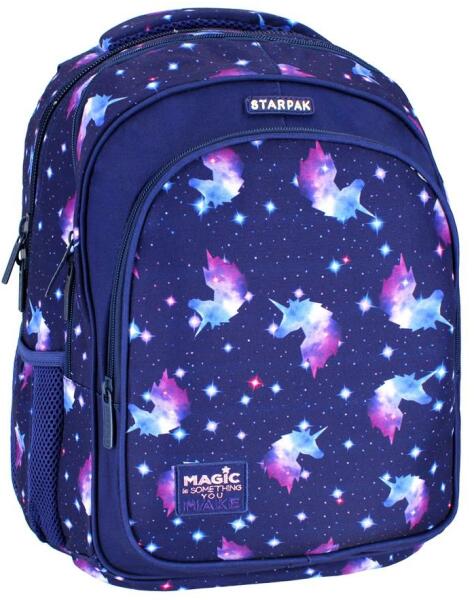 Az Unikornis ergonomikus iskolatáska, hátizsák különleges világűrt idéző dizájnnal a nagyobb iskolás korosztály számára készült. Az iskolai felszerelést három különböző méretű, cipzáras rekeszbe lehet pakolni. Kétoldalt egy-egy kis hálós zsebben tárolható például az üdítős kulacs. A táska kézben és háton is kényelmesen hordható, hátoldala ergonomikus kiala