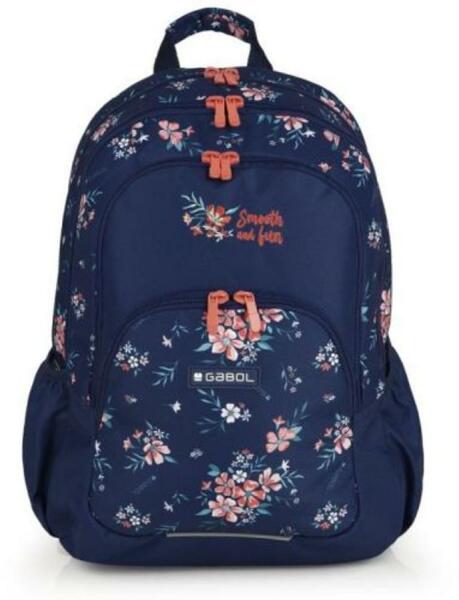 Iskolatáska sötétkék színben, szép virágos mintával , mely visszafogott stílusú, mégis csodaszép. Á llítható, szivacsos vállpánttal, és hátrésszel rendelkezik . A vállpánt nem vágja gyermeked vállát, a hátrész ergonomikus kialakítása nem terheli meg a gerincét. Kényelmesen viselhető még telepakolt állapotban is, így nemcsak iskolatáskának , de kirándulásra de
