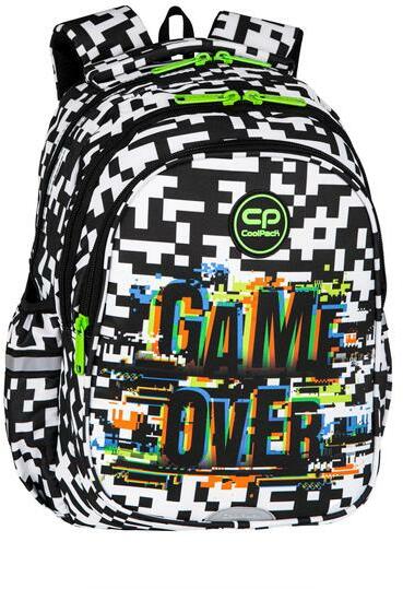 A közkedvelt videojáték logóval díszített Coolpack - Jerry ergonomikus iskolatáska, hátizsák - 3 rekeszes - Game Over a kisiskolás korosztály ruhatárának div atos kiegészítője. A hátizsák 3 különböző méretű, cipzáras rekesszel rendelkezik . Két nagy rekeszében könnyedén elfér az A4 -es formátum, ami az iskolai tankönyvek hagyományos mérete. A hátizsák oldalán k