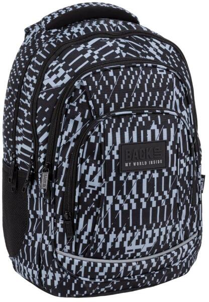 A különleges megjelenésű BackUp iskolatáska, hátizsák mellpánttal - 4 rekeszes - Noise az alsó tagozat 3. osztályától egészen a nagyobb korosztályig kiváló választás. A hátizsák 4 különböző méretű cipzáras rekesszel és 2 kisebb hálós oldalzsebbel rendelkezik. A nagyobb rekeszekbe kerülnek a könyvek, füzetek, a főzsebben tablet tartó is található. Hátoldala szi