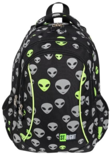 St. Right Aliens ergonomikus iskolatáska hátizsák 15" Hivatalos magyarországi forgalmazótól. Leírás: Igazán különleges és látványos ez a St. Right iskolatáska, mely a gyár egyik legújabb kollekciójának tagja. A táska külseje telis-tele van fényvisszaverő UFO fejekkel és ha fény éri, akkor azok izzóan világítanak. Az ergonomikus kialakítás rendkívüli kényelmet bizt