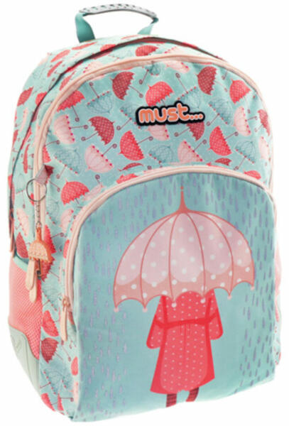 Must: Esernyős három rekeszes iskolatáska, hátizsák 33x16x45cm Hivatalos magyarországi forgalmazótól. Leírás: Ez a táska meglehetősen különleges mintát kapott, hiszen egy kislány látható rajta esernyővel és szakadó esővel, azonban a rózsaszín és halvány kék színei miatt biztosak vagyunk benne, hogy a kislányok örömmel kezdi meg a sulit egy ilyen iskolatáskával. A h