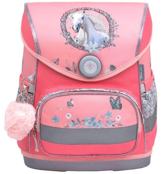 A Belmil Merevfalú Iskolatáska Compact 405-41/AG Horse Snowflake AGR Tanúsítvánnyal rendelkező modellje ezúttal a lovak szerelmeseit nyűgözi le, és vezeti be egy rendkívül csajos, rózsaszínben pompázó mesevilágba. Hiszen újabb, stílusos, iskolatáska változatot hoz el a gyerekeknek, ami bájos lovacska mintával büszkélkedhet. Ez a táska tehát bármelyik sulis napot feldobh