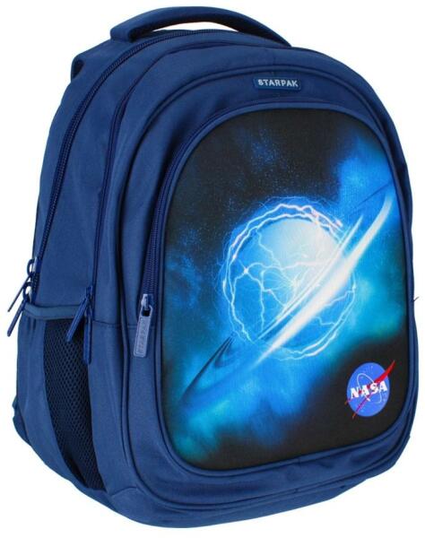 A nagyméretű NASA 2 rekeszes iskolatáska, hátizsák a nagyobb korosztály számára készült. A hátizsák 2 nagyobb méretű rekesszel, egy első cipzáras és két kisebb hálós oldalzsebbel rendelkezik. Hátoldala ergonomikus kialakítású, légáteresztő hálós szivaccsal. A belső zsebekben több kisebb rendszerező zseb, kulcstartó és mobiltartó is található. Állítható váll