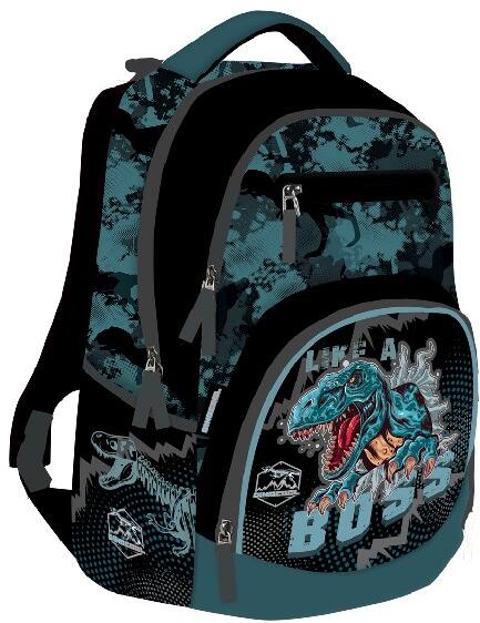 Hátizsák LIZZY CARD ACTIVE DINO Cool Boss Kiváló minőségő iskolai hátizsák főképpen 3. és 4. osztályosok részére, puha, szivacsos hátrész, mely megkíméli a gerincet, két nagy tárolórész, belül laptoptartó, elülső két kisebb tárolórészben apró zsebek iratoknak, telefonnak, apróságoknak, oldalzseb a kulacsnak.