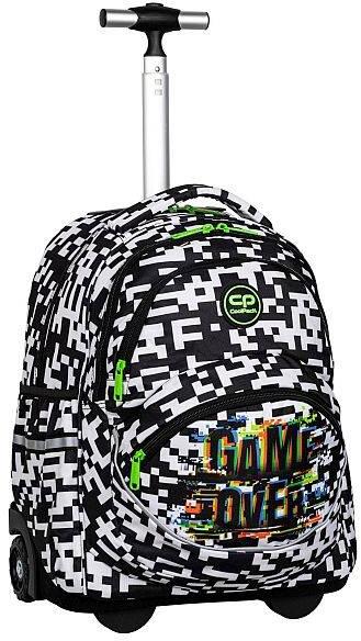 A vagány videojátékos felirattal dekorált Coolpack - Starr gurulós iskolatáska, hátizsák - 3 rekeszes - Game Over az iskolás korosztály ruhatárának divatos kiegészítője. A hátizsák 3 különböző méretű, cipzáras rekesszel rendelkezik, e lől még egy kisebb zseb található. Strapabíró kerekeken gurul, a hátizsák háton is hordható. Két nagy rekeszében könnyedén elf