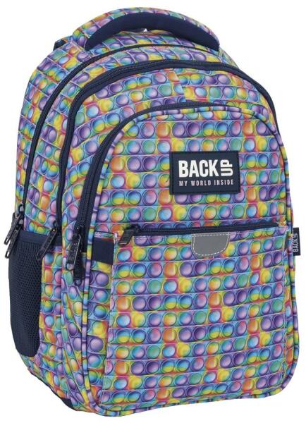A Pop it BackUp há tizsák a kisiskolás lányok számára készült. A hátizsák 3 különböző méretű cipzáras rekesszel, elöl plusz 1 kisebb cipzáras zsebbel és 2 hálós oldalzseb bel rendelkezik. Hátoldala merevített, ergonomikus kialakítású, légáteresztő hálós szivaccsal. Állítható vállpánt ja szivacsos, légáteresztő hálós fedőréteggel, diszkrét fényvisszaver