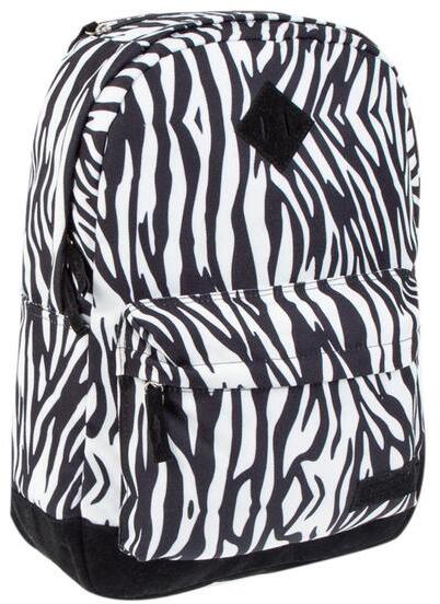 Nagyméretű Zebra mintás iskolatáska, hátizsák (446571) a nagyobb korosztály számára. Párnázott vállpántja állítható hosszúságú, alja velúr hatású anyaggal borított. Egyterű belsejében elegendő hely van a könyvek, füzetek számára. Elején kisebb cipzáras zsebben a tolltartó hordható, a tetején lévő zsebbe tehetünk kulcsot, telefont, oldalán egy kis zseb rejtőz