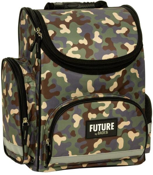 Terepszínű ergonomikus iskolatáska - Future by BackUp - Moro klasszikus terepmintával és menő színvilággal. Az ergonomikus megnevezés azt takarja, hogy a tervezés során figyelembe veszik a kisiskolás korú gyermekek testi adottságait és olyan hátizsákot készítenek, mely kíméli a gerincet, segíti a helyes testtartást. A táska oldala merevített, hátsó része a gerinc két o