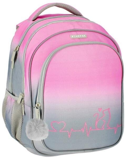 Cicás ergonomikus iskolatáska, hátizsák - Ombre Kitty szép, ombre hatású színeivel és cicás mintájával a lányok ruhatárának trendi kiegészítője. A hátizsák 2 nagy és egy kisebb méretű, cipzáras zsebbel és két kisebb, megerősített, hálós oldalzsebbel rendelkezik. Hátoldala ergonomikus kialakítású, gerinckímélő. Állítható vállpántja szivacsos, légátereszt