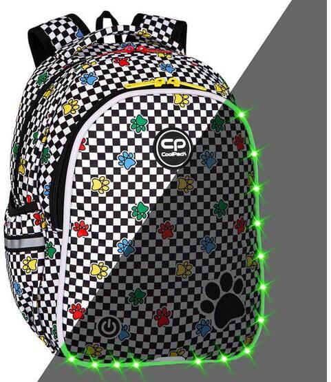 A Coolpack egy igazi újdonsággal drukkolt elő, mégpedig a világító hátizsákkal! A LED világításnak köszönhetően gyermekünk jól láthatóvá válik és biztonságban tudhatjuk. A LED szalag 23 fénymódot tartalmaz, melyet egy külső gombbal tudunk kiválasztani. A világítás egy külön zsebben található mini USB csatlakozóval, egy PowerBank-hoz csatlakoztatva működik. A P