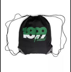 - Fekete tornazsák "Fradi" - Kiváló minőségű anyag - Könnyű és kényelmes - Praktikus zsinóros záródás - Hivatalos FTC termék - Zöld-fehér "1899 Fradi" felirattal - Sportoláshoz és mindennapi használatra Csomagolás mérete: 0.1 x 37 x 44 cm