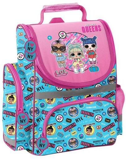 LOL Surprise ergonomikus iskolatáska - Queens cuki babák képével, 1-2. osztályos kisiskolásoknak. Az ergonomikus megnevezés azt takarja, hogy a tervezés során figyelembe veszik a kisiskolás korú gyermekek testi adottságait és olyan hátizsákot készítenek, mely kíméli a gerincet, segíti a helyes testtartást. A könnyített táska oldala merevített , hátsó része a gerinc két